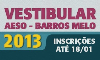 As Faculdades Integradas Barros Melo (AESO) estão com as inscrições abertas para o Vestibular 2013. Os estudantes interessados em participar têm até o dia 18 de janeiro para acessar o site da instituição, preencher o formulário, imprimir o boleto e pagar uma taxa de R$ 60 em qualquer agência bancária. As provas acontecem no dia 20 de janeiro, no horário das 09h às 13h, na sede da instituição.