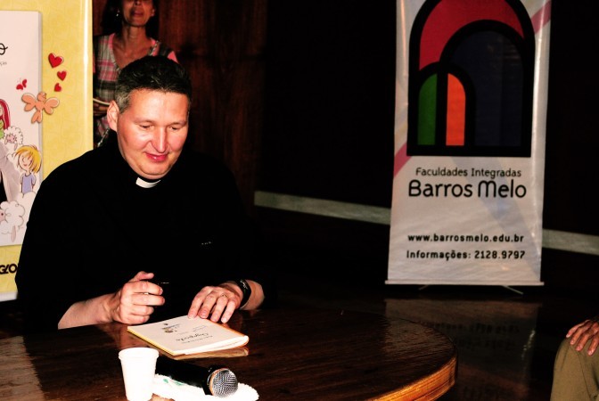 As cerca de vinte mil pessoas que esperavam na fila, dobrando quarteirões no Bairro do Recife, no dia 12 de junho, pareciam incansáveis. Pedro Diego, 30 anos, chegou ao local às 21h do dia anterior, com sua mulher Jaqueline, grávida de seis meses. “Acompanho o padre há 17 anos. Vou perguntar agora para ele como devo chamar minha filha”, comenta. “Comprei dois livros. Um para minha filha, que está na barriga e outro para mim e minha esposa.”, conclui com emoção, antes de entrar no auditório da livraria e se juntar a um coro de pessoas que acompanhavam o Cd do religioso que tocava ao fundo.